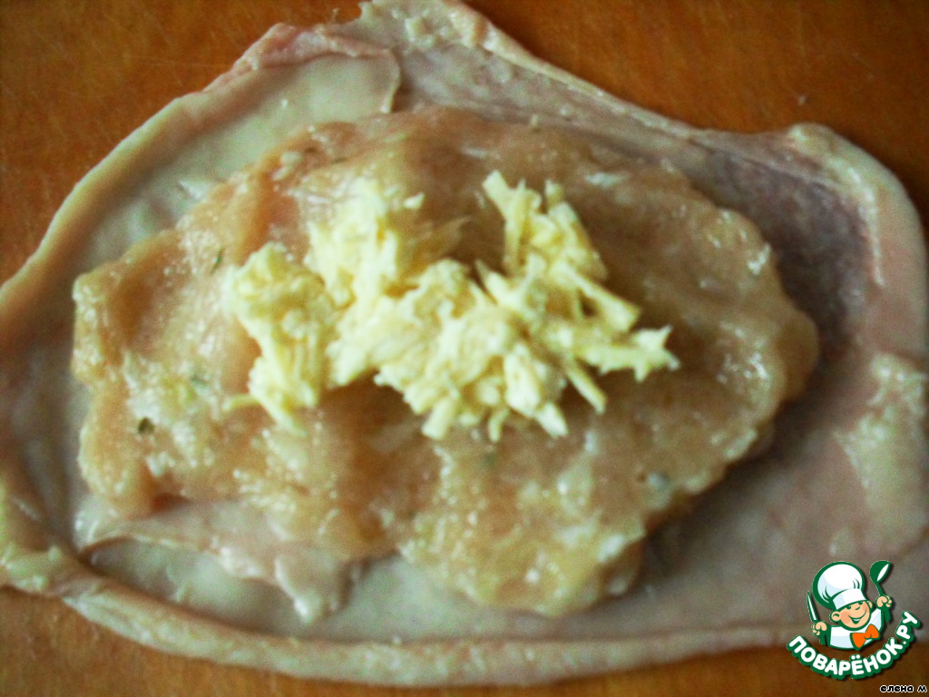 Из фарша сделать лепешку, положить на середину сырную массу.