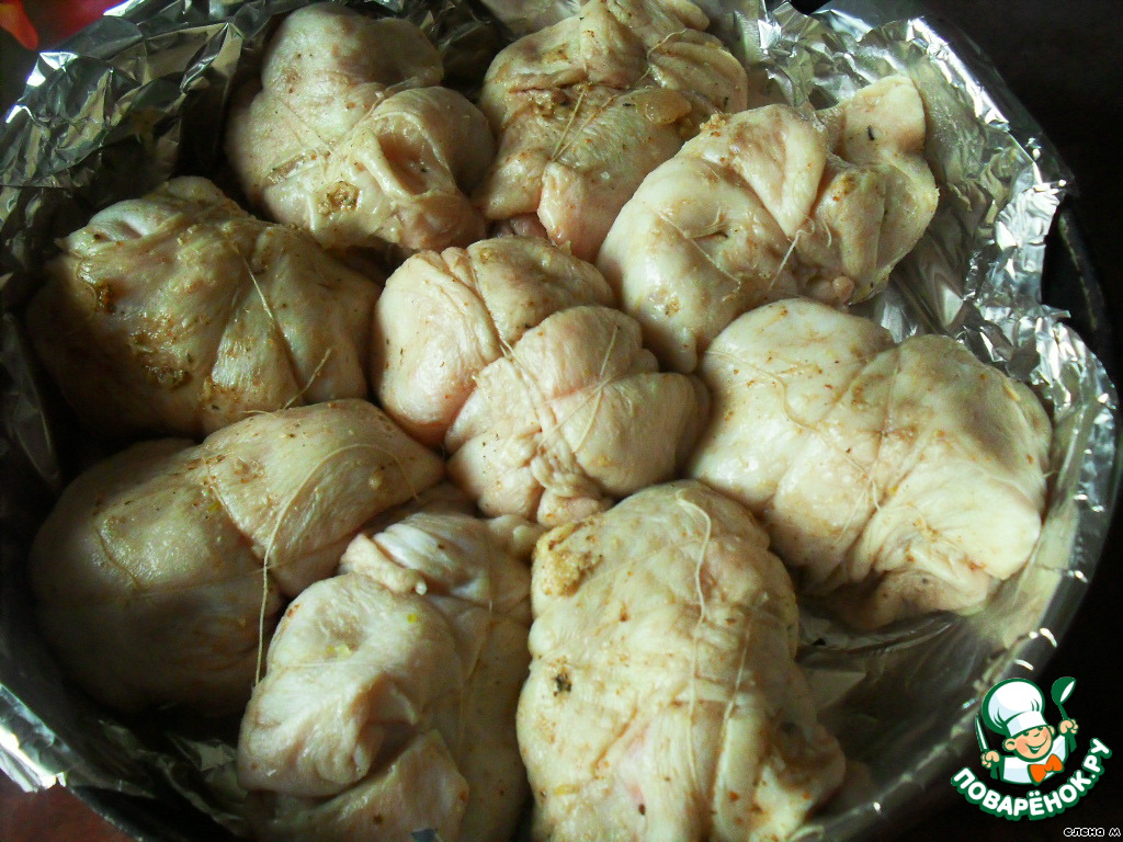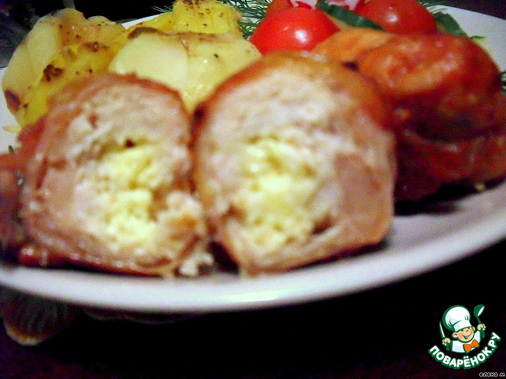 | Вкусные запеченные зразы из куриного фарша и сыра в ароматной, хрустящей куриной шкурке. |