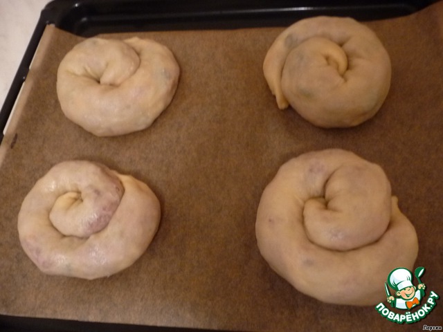 3. Пласт завернуть рулетом. Концы защипать и свернуть "улиткой".