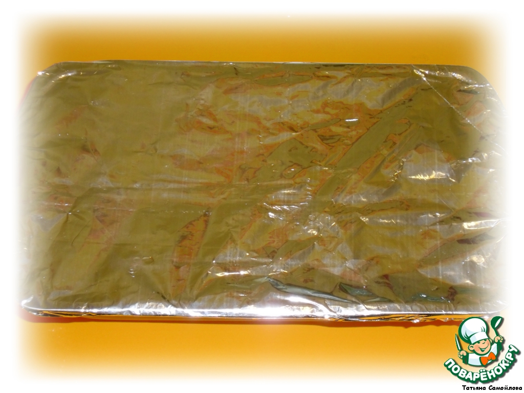 Закрываем сверху фольгой. И ставим в разогретую до 180 градусов духовку на 1,5 ч.