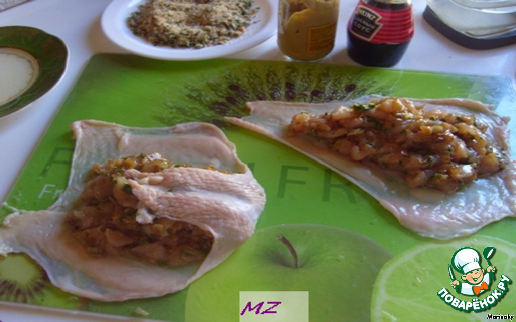 Отделяем куриную кожицу от филе, не ворчите... кто знает, что это вредно=)) Вот такие кожаные пластинки получились=))