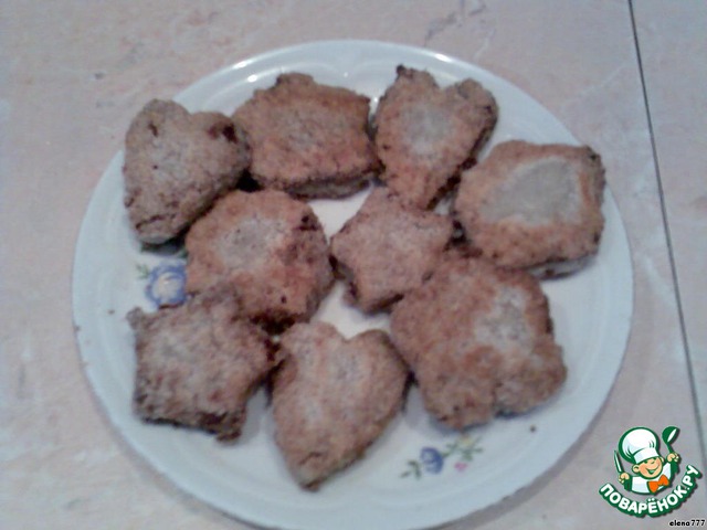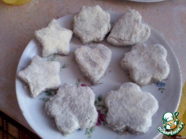 Потом сделать биточки, тут я немножко навыдумывала и вырезала биточки формочками (это очень понравилось моей маленькой дочурке, она кушала с огромным удовольствием - звёздочки, сердечки и т.д.)