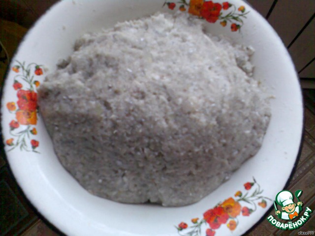 Отдельно перекрутить сало и отжатую хлебно-творожную массу(надо отцедить молоко, чтобы творог остался, затем смесь немного отжать).