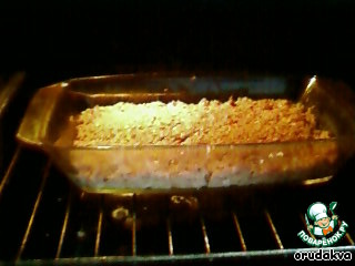 Выпекать в духовке при температуре 200град. около 40 минут. У меня был жирноватый фарш, а если говядина без жира, то верх можно смазать сливочным маслом.