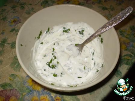 Пока обжариваются наши зразы, приготовим соус: смешаем сметану с зеленью