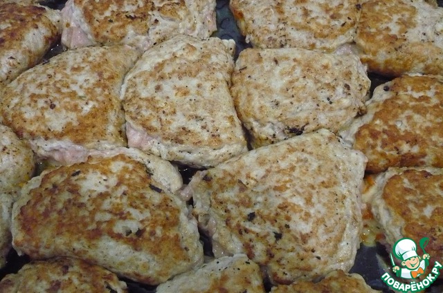 Жарим с каждой стороны по 1 мин. и убираем на смазанный маслом противень.