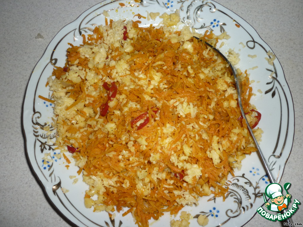 Морковь, натертую на терке, измельченный лук, горький перец посолить, поперчить и поджарить на сковородке до готовности.