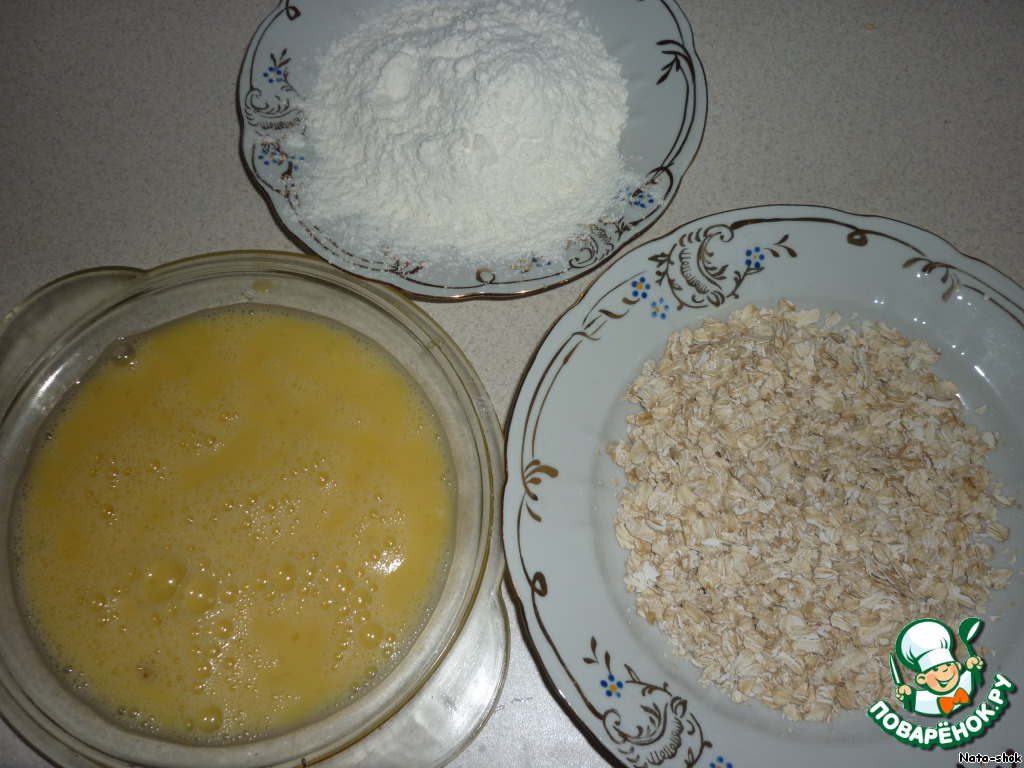 Хорошо обвалять зразы в муке, потом яйце и, наконец, в овсяных хлопьях.