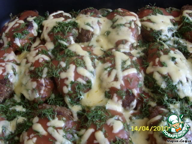 Отправляем противень в разогретую духовку на 10 мин., чтобы сыр расплавился, и блюдо прогрелось.