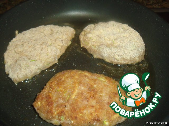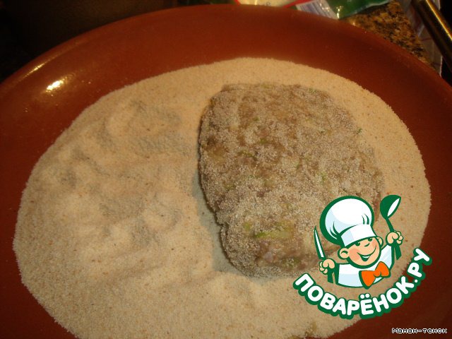 выравниваем в лепешечку (удобнее это делать прям в тарелочке с сухариками, формируя лепешку, иначе в руках начинает разваливаться)