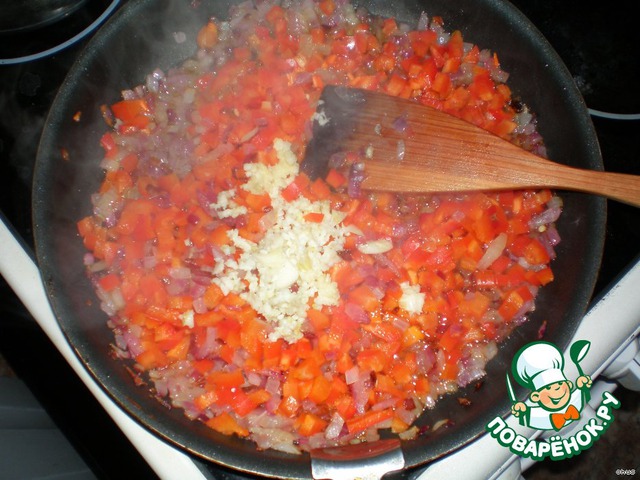 Добавить на сковороду к луку перец, чеснок, соль и перец по вкусу, розмарин, сахарок. Потушить, затем добавить вино, немного выпарить, добавить бульон.