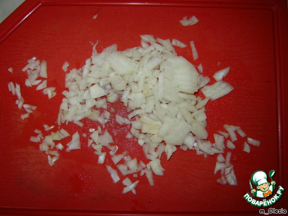 Мелко нарезаем лук.