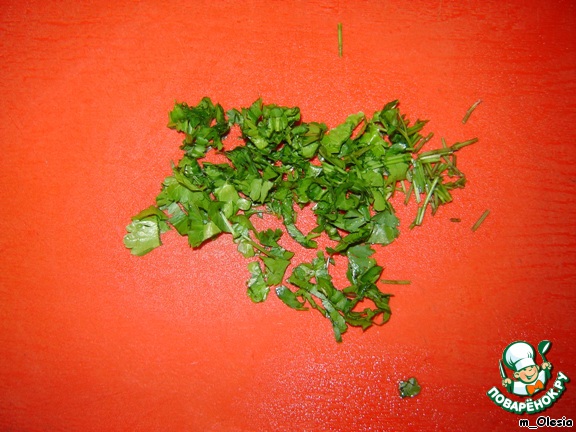 Пока наши лепешки обжариваются, мелко нарезаем зелень.