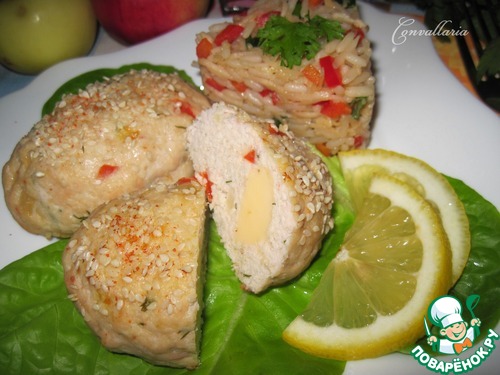Куриные котлеты с яблоком, болгарским перцем и сыром