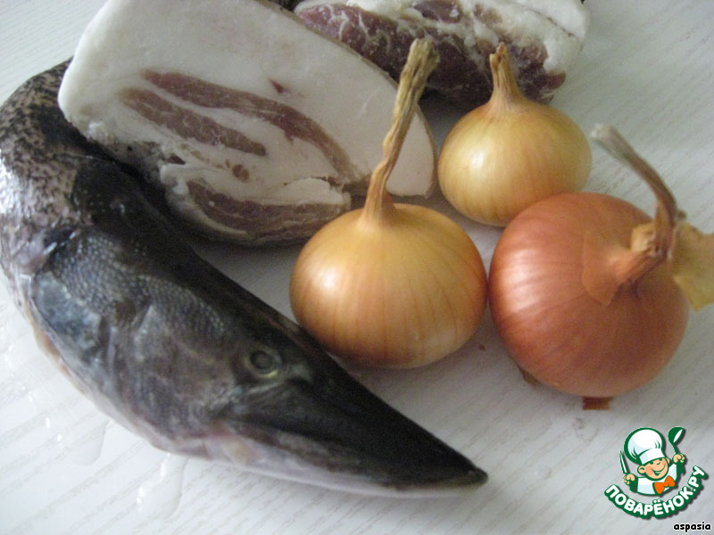 Щуку освободить от костей, лук порезать крупно, сало соленое нарезать кусками - все перекрутить через мясорубку (пропорции 1:1:1). Конечно, свежевыловленный кижуч камчатский, в тех же пропорциях перекрученный для фарша, тоже хорош. Но у нас в Сибири только замороженная рыба. А на Камчатку лететь - очень дорого билет стоит. Будем готовить Емелины котлеты из щуки. А, вдруг, она в рыбку золотую преобразится?