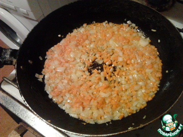 Моем, нарезаем кубиками морковь и репчатый лук.
