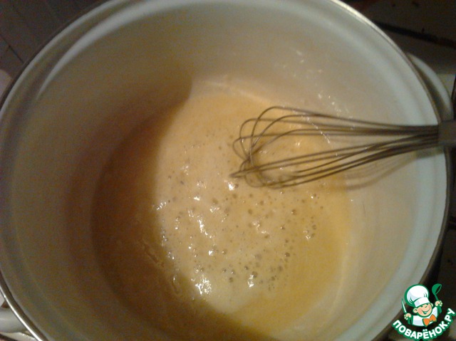 Пока жарится фарш, займемся соусом. Я делала в кастрюльке, можно и в глубокой сковороде (в чем удобно), для этого кладем в раскаленную кастрюлю сливочное масло, когда масло растопится, всыпаем помаленьку муку и жарим, непрерывно помешивая, на слабом огне до золотистого цвета, затем вливаем струйкой при непрерывном помешивании 2 стакана молока. Доводим до кипения и выключаем газ.