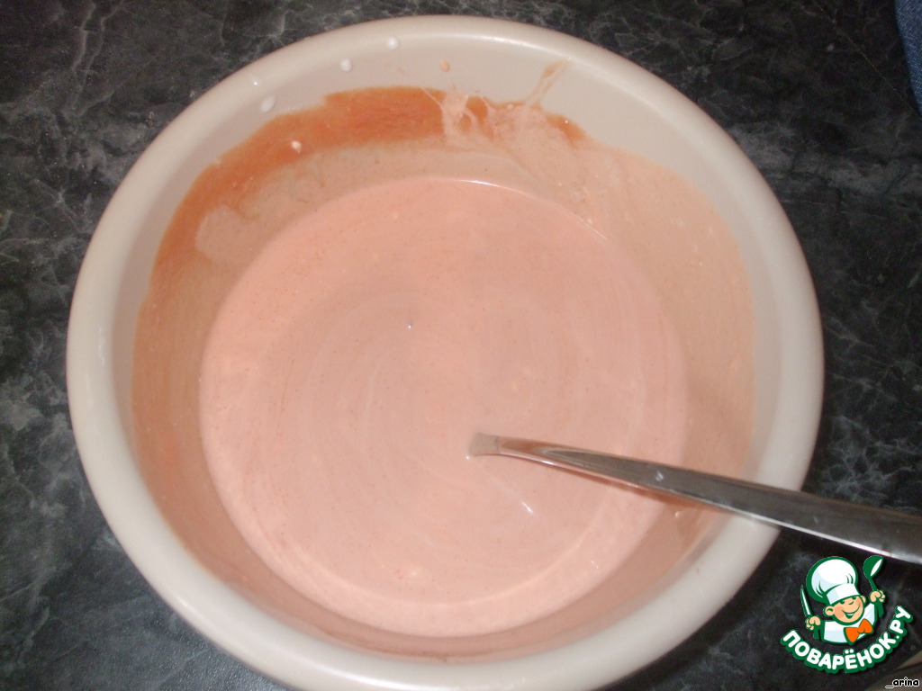 Смешиваем томатную пасту со сметаной, солим-перчим по вкусу