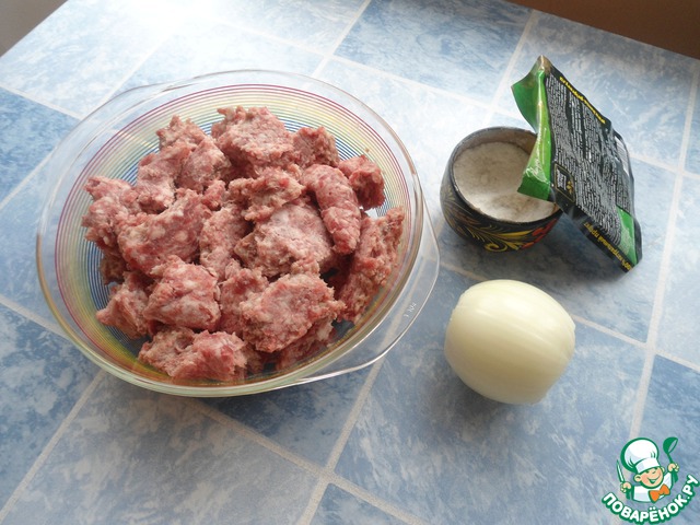 Фарш (для меня предпочтительней смешанный - свинина+говядина), соль, мелко нарезанный лук, перец, смешать. Можно добавить любимых приправ.