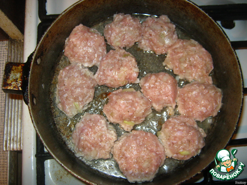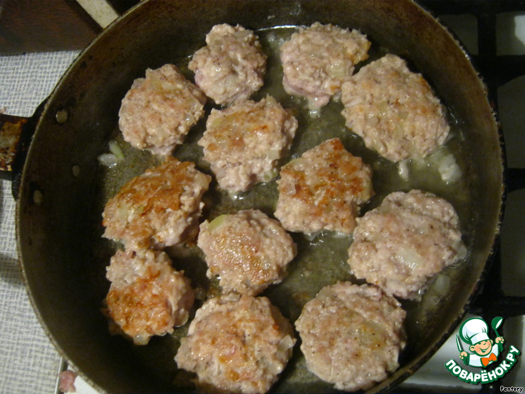 Выкладываем наши маленькие котлетки на разогретую сковороду с растительным маслом.