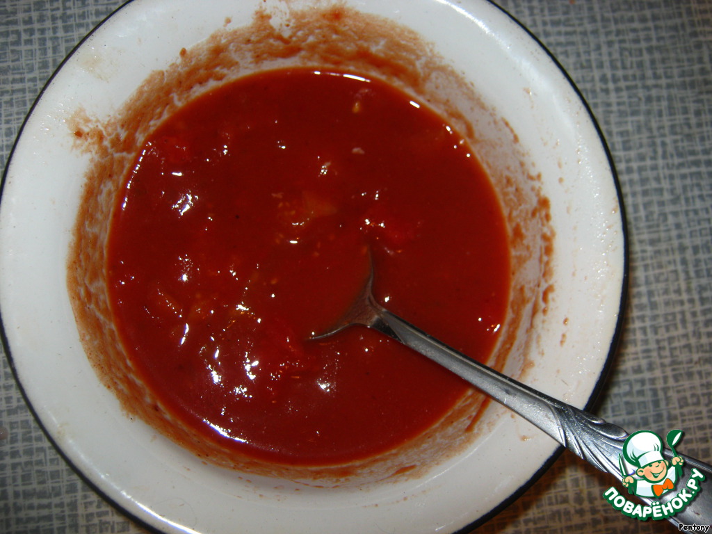 Берем пасту, разводим где-то стаканом воды, хотя сейчас это не так важно... Я добавляла туда аджику еще..., Вы - свою приправу.