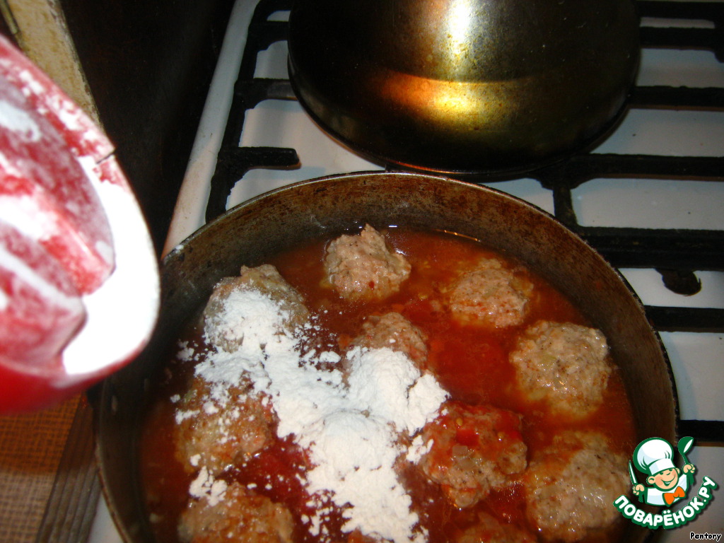 Мука..., тихонько мешаем, если густо добавьте водички.