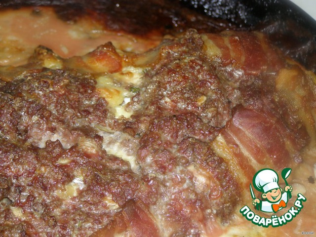 Слой фарша положить на бекон,
