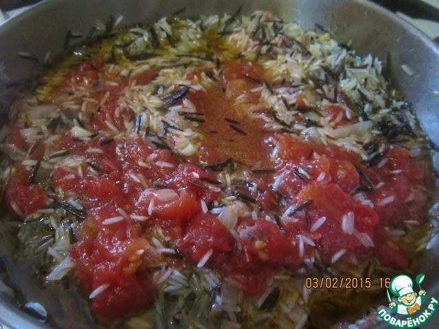 Добавить рис и готовить, помешивая, еще 2 минуты.