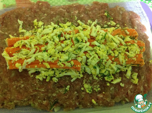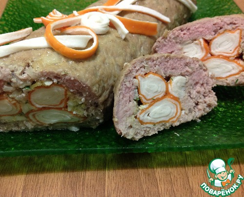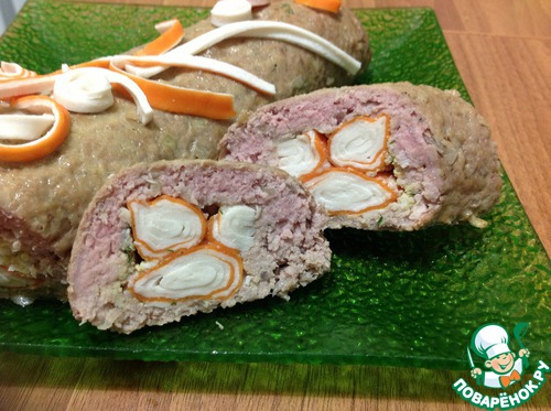 Рулет мясной с крабовыми палочками "Крабик в шубе"