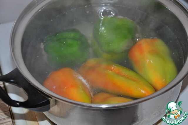 Наливаем в кастрюлю воды, доводим до кипения и помещаем в нее перцы.