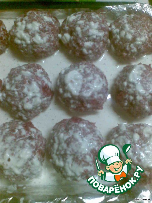 скатываем в шарики (я делаю крупные)выкладываем на раскаленную сковороду, буквально на минутку, обжариваем с двух сторон (чтобы только корочка появилась)