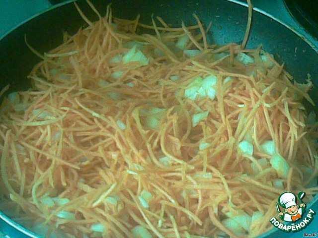 Обжарим морковь с луком.