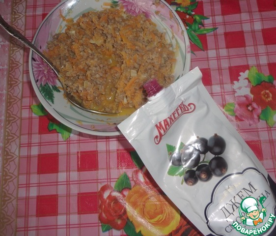 Добавляем немного джема "черная смородина" и перемешиваем.