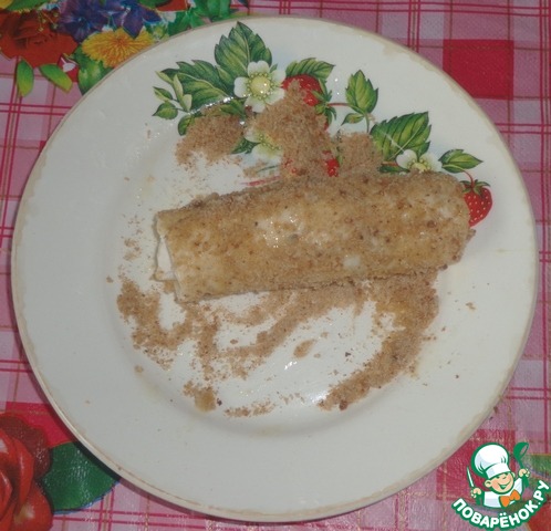 Смешиваем яйцо с молоком, добавить чуть чуть соли. Рулетик обмакнуть в эту смесь и в панировочные сухари.