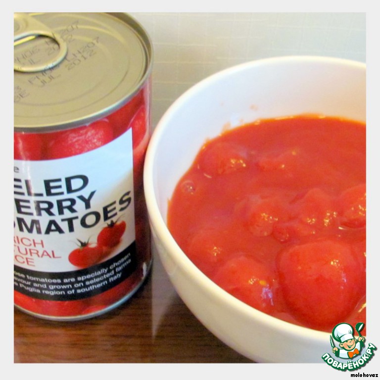 Помидоры в собственном соку - прекрасная замена обычным помидорам, тем более не в сезон. Измельчаю слегка их блендером.