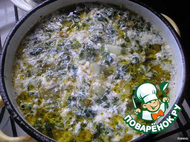 Варим еще 3 – 5 мин. Добавляем мелко нарезанную зелень петрушки и укропа. Если варить дольше, то щавель сильно разваривается.