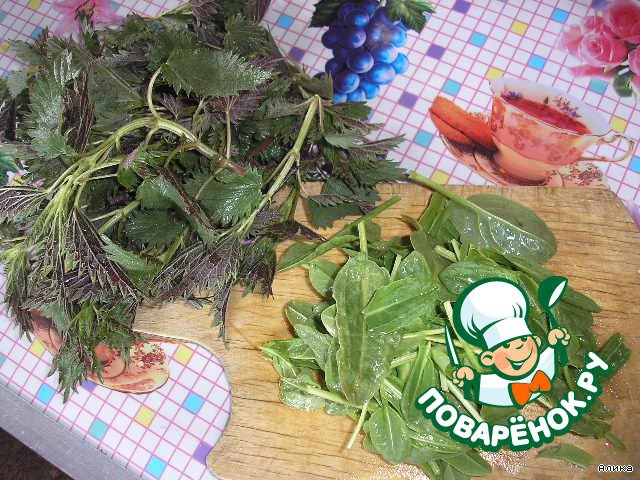 Приготовить молодую крапиву и щавель. (Щавеля нужно примерно в 1,5 раза больше, у нас на даче пока его немного). Щавель дает кислинку этому супчику.