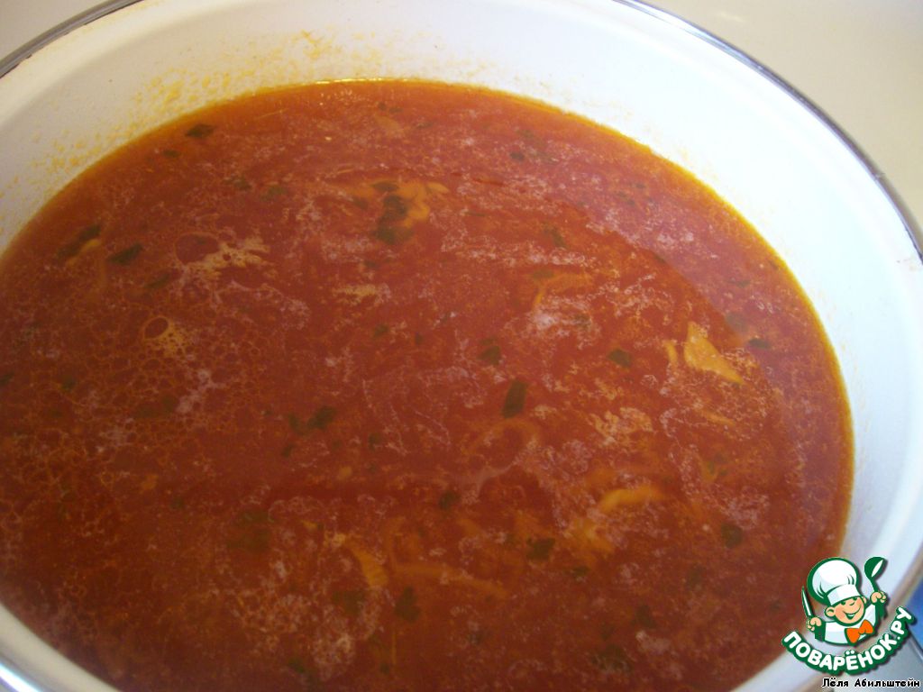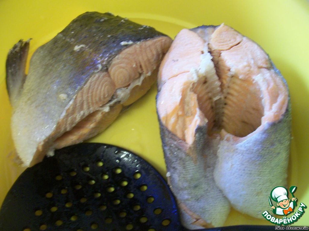 Честно говоря, этот вкусный борщ мы с удовольствием едим всей семьей, поэтому варю его в 5-ти литровой кастрюле. Ингредиенты даны из этого расчета. Итак. Наливаем в 5-ти литровую кастрюлю 3,5 литра воды, доводим до кипения, закладываем рыбу, снова доводим до кипения, снимаем накипь, солим и варим на медленном огне 40 минут. Вынимаем рыбу и даем ей остыть (чтобы можно было вынуть косточки).