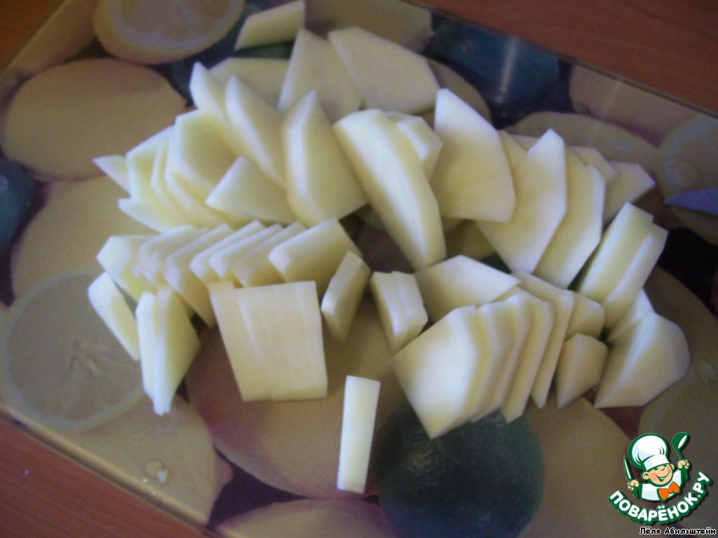 Чистим и режем на мелкие кубики картофель. Тоже запускаем в бульон вслед за капустой. И оставляем повариться на медленном огне минут 20.