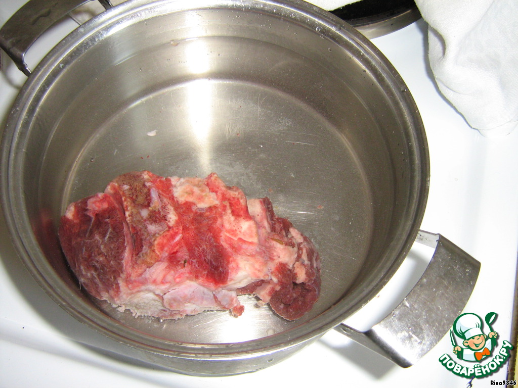 Варим бульон на говяжьей косточке. Солим по вкусу.