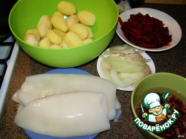 Постный борщ с кальмарами