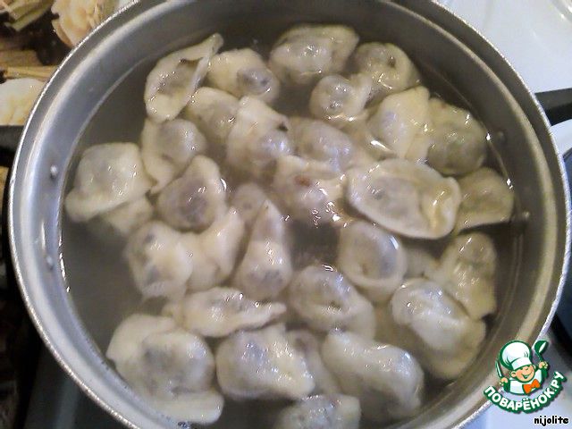 Лук обжариваем и вместе с грибами перекручиваем на мясорубке, слегка перчим. Это будет начинка для ушек(колдунай).