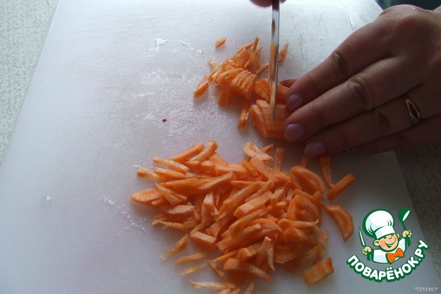 Так же нарезаем морковь.