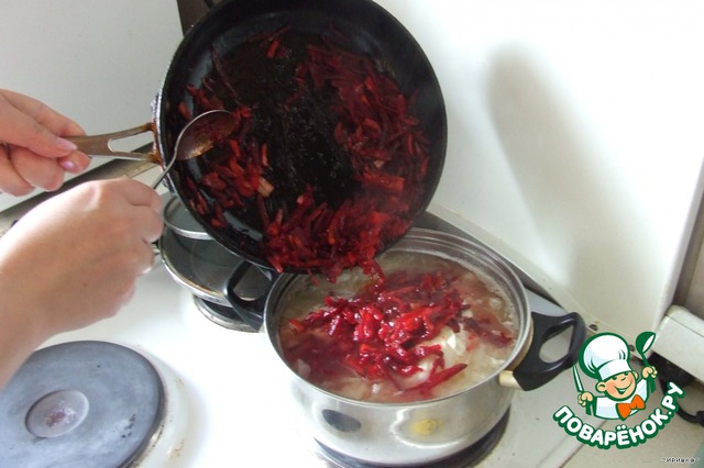 Выложить в кастрюлю с бульоном и варить 5 минут.