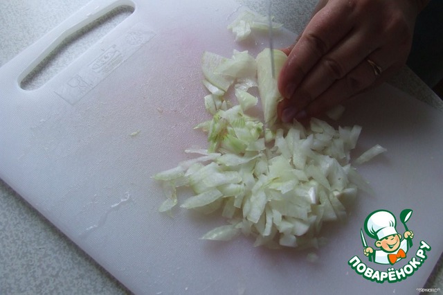 Лук нарезать кубиками.