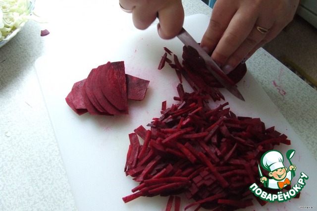 Нарезаем соломкой свеклу.