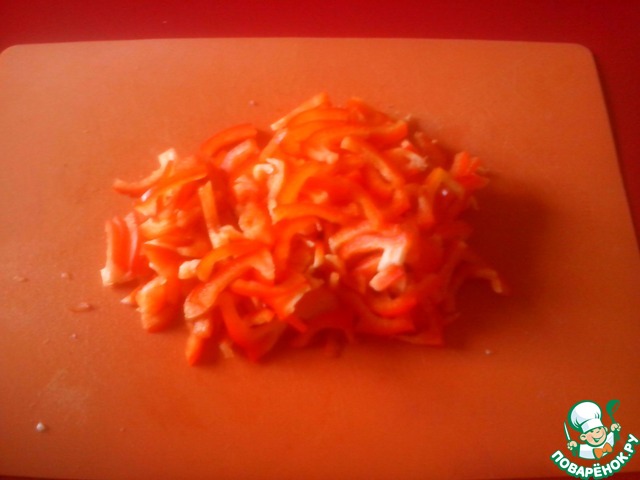 В то время пока варится картошка и капуста шинкуем болгарский перец.