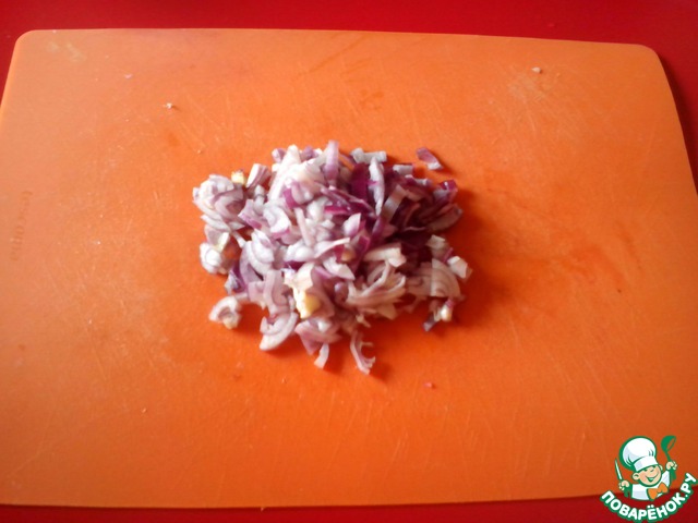 Нарезаем репчатый лук по своему вкусу. Лично я половинки луковицы разрезаю