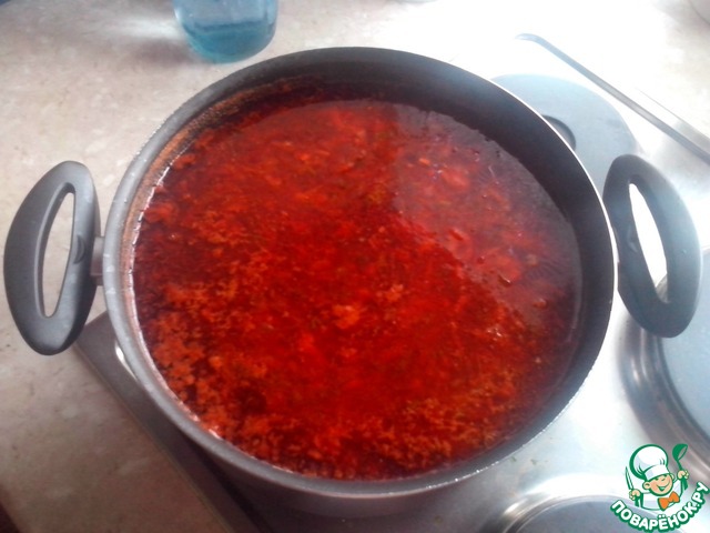 Добавляем в кастрюлю нашу пассеровку и свекольное пюре. Варим все это еще минут 10 и наш борщ готов. Осталось разлить по тарелкам и добавить сметану. :) Конечно же борщ становится готовым полностью только на следующий день, когда овощи "поженятся". Всем приятного аппетита! Я надеюсь мой рецепт придется вам по вкусу. :)