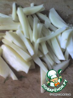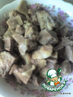 Приготовить мясной бульон. Я варю целым куском, а потом вынимаю и режу на кусочки.